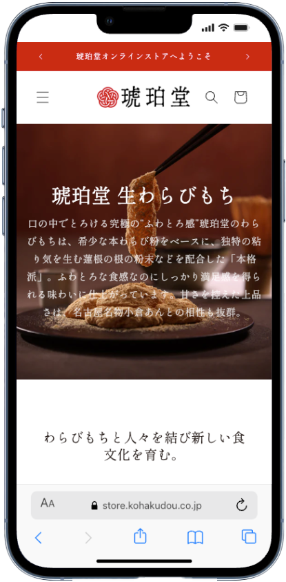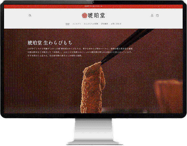 希少な本わらび粉を使用した、とろけるような「ふわとろ」食感の生わらびもちを提供する<琥珀堂>様のオンラインショップ制作を一貫して担当いたしました。